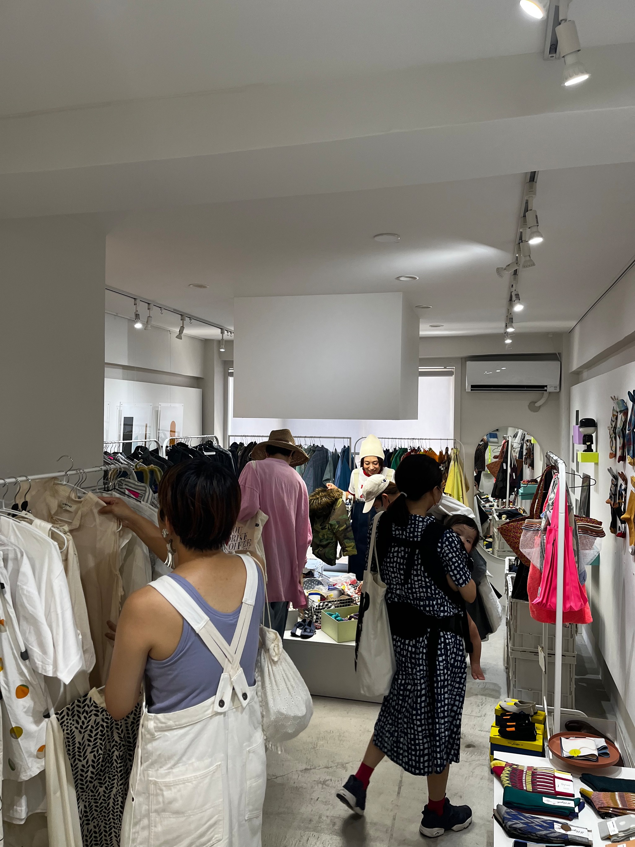 このマーケットの醍醐味としましては、初日の2時間まではご予約制としていること。ご予約にすることで、本気でもの選びをしたい方々へ向けております。この時間帯に訪れるみなさまは“対モノ“なのでとっても静か。トータルコーディネートをして帰られる方も数名いらっしゃるほど。みなさまスタイリストのよう。見ていて私も大変楽しい時間帯でもあります。