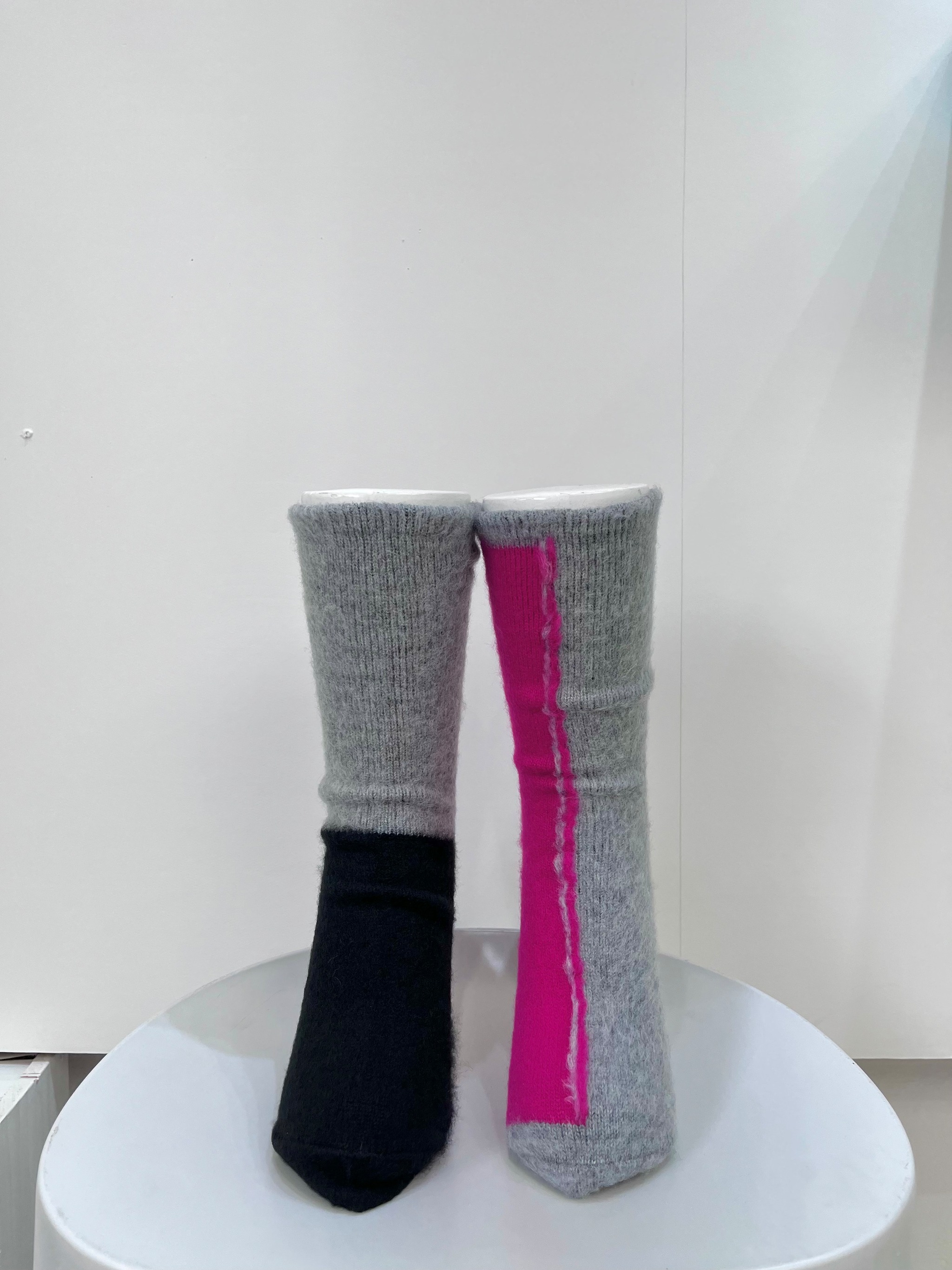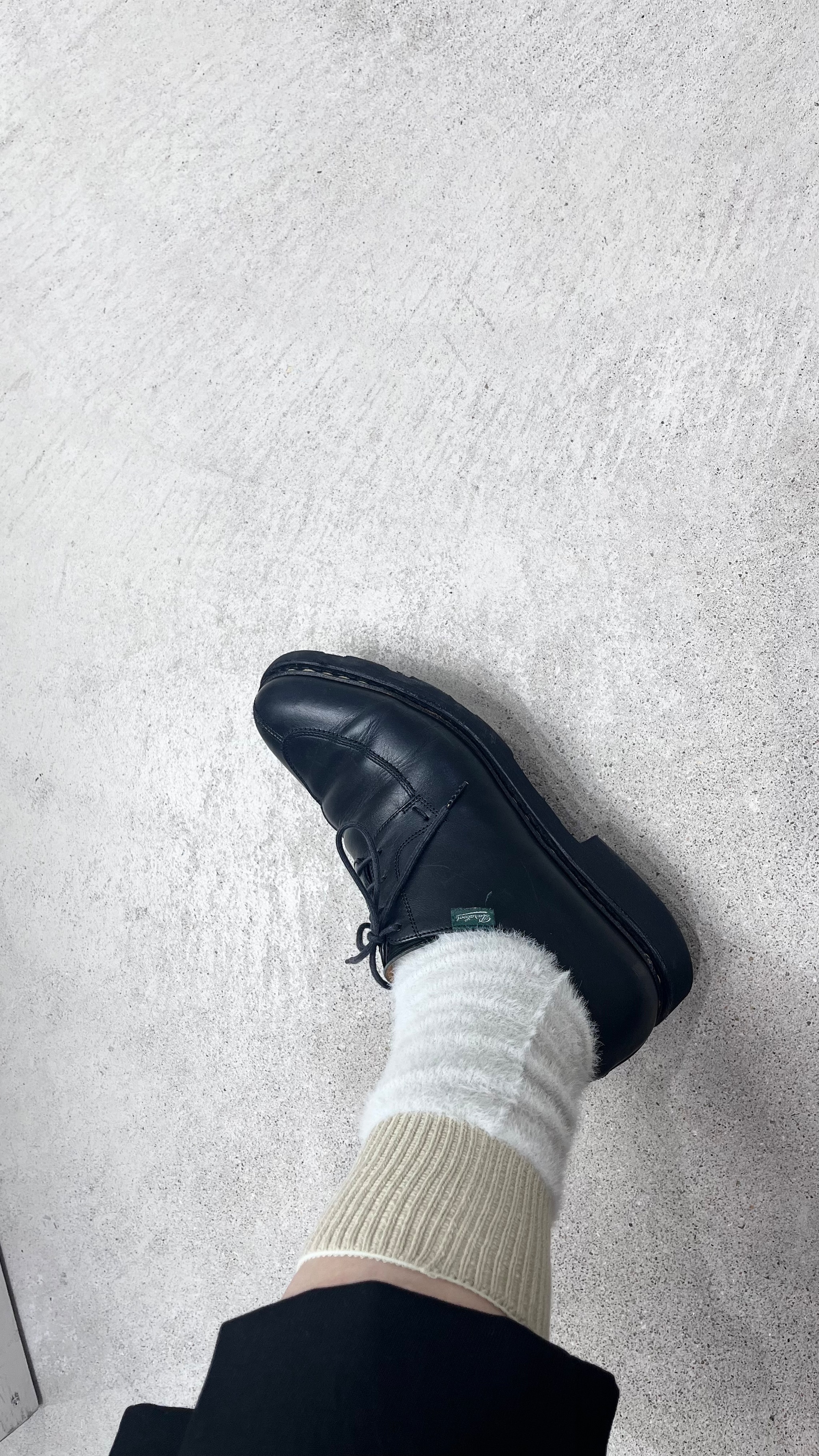 靴を履くと、途端にシンプルなウールソックスに・・・!そのギャップもまたユニークですね。