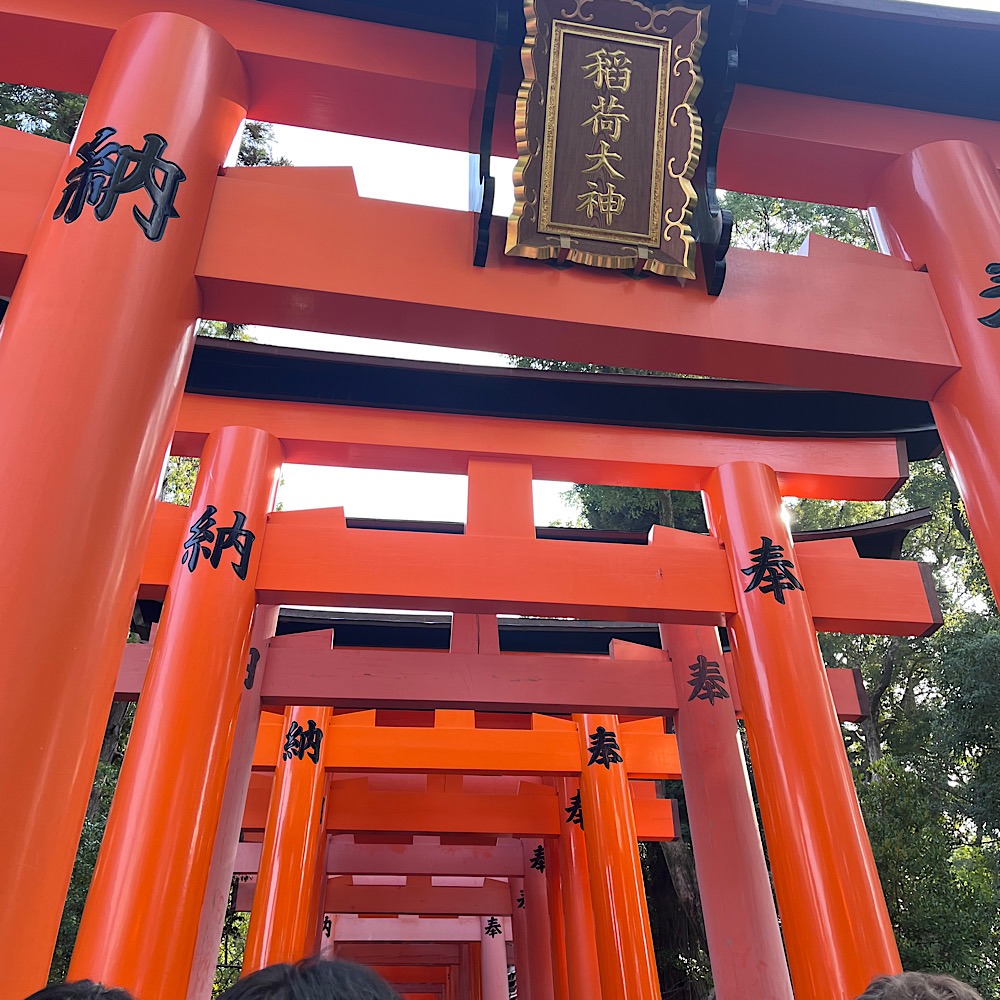 2日目は朝から伏見稲荷大社へ。鳥居がひたすら続く続く・・・なんとも縁起の良い。天気も良く、早速京都らしいスタートでした。何か楽しいことが始まりそうな良い予感をバシバシと感じつつ。。どうやら夢で1度見た景色のようです。デジャヴということですね。時間の関係でゴールの1/3まで登って戻りました。