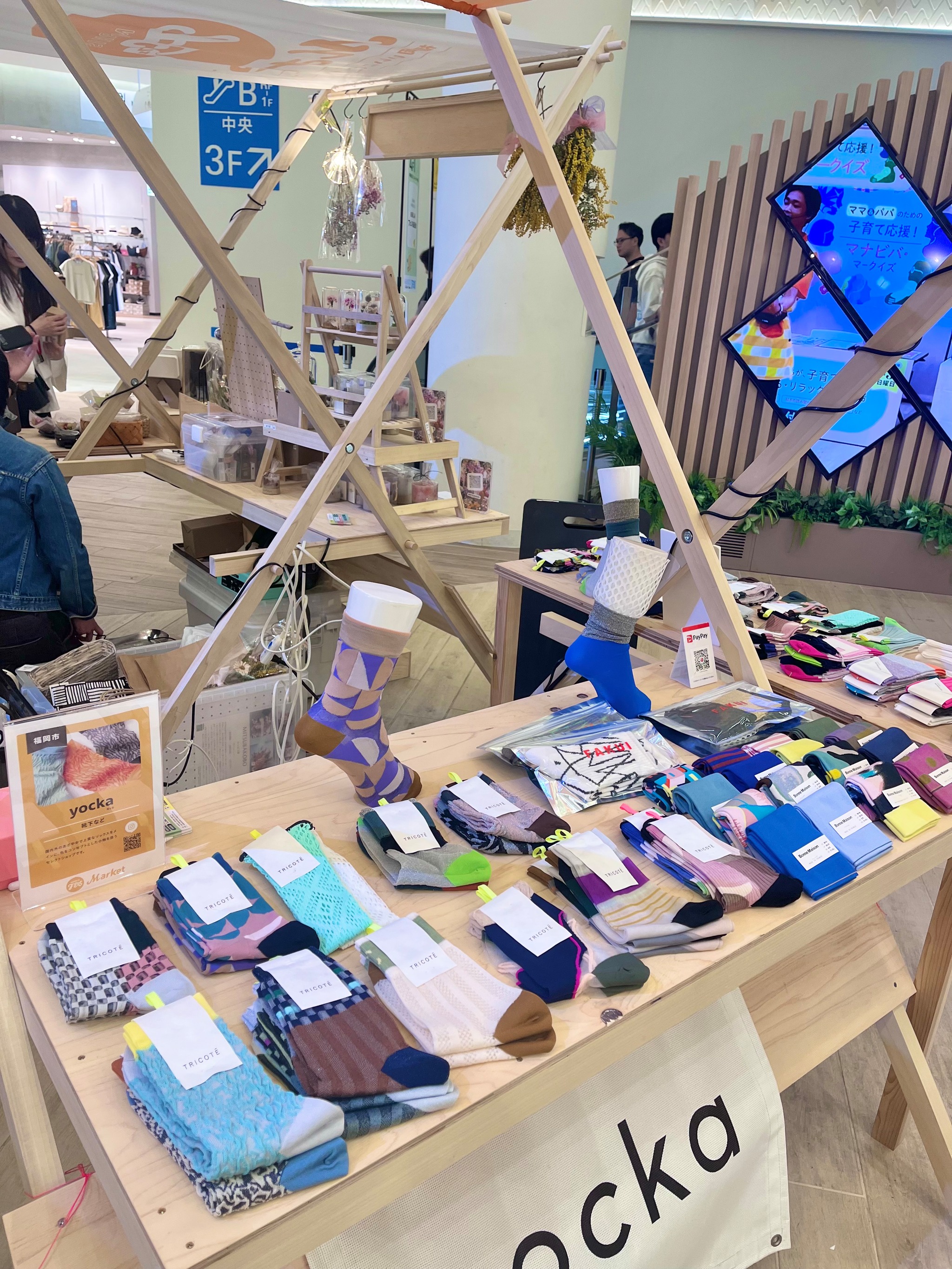 2月はyocka実店舗の周年月。今年もyockaスタート時からお取り扱いさせていただいているTRICOTÉ をカラーゲストに展開いただきました。TRICOTÉの本店でも開催されていたソックス展のパネルをお借りして、みなさま興味深くご覧いただけました。