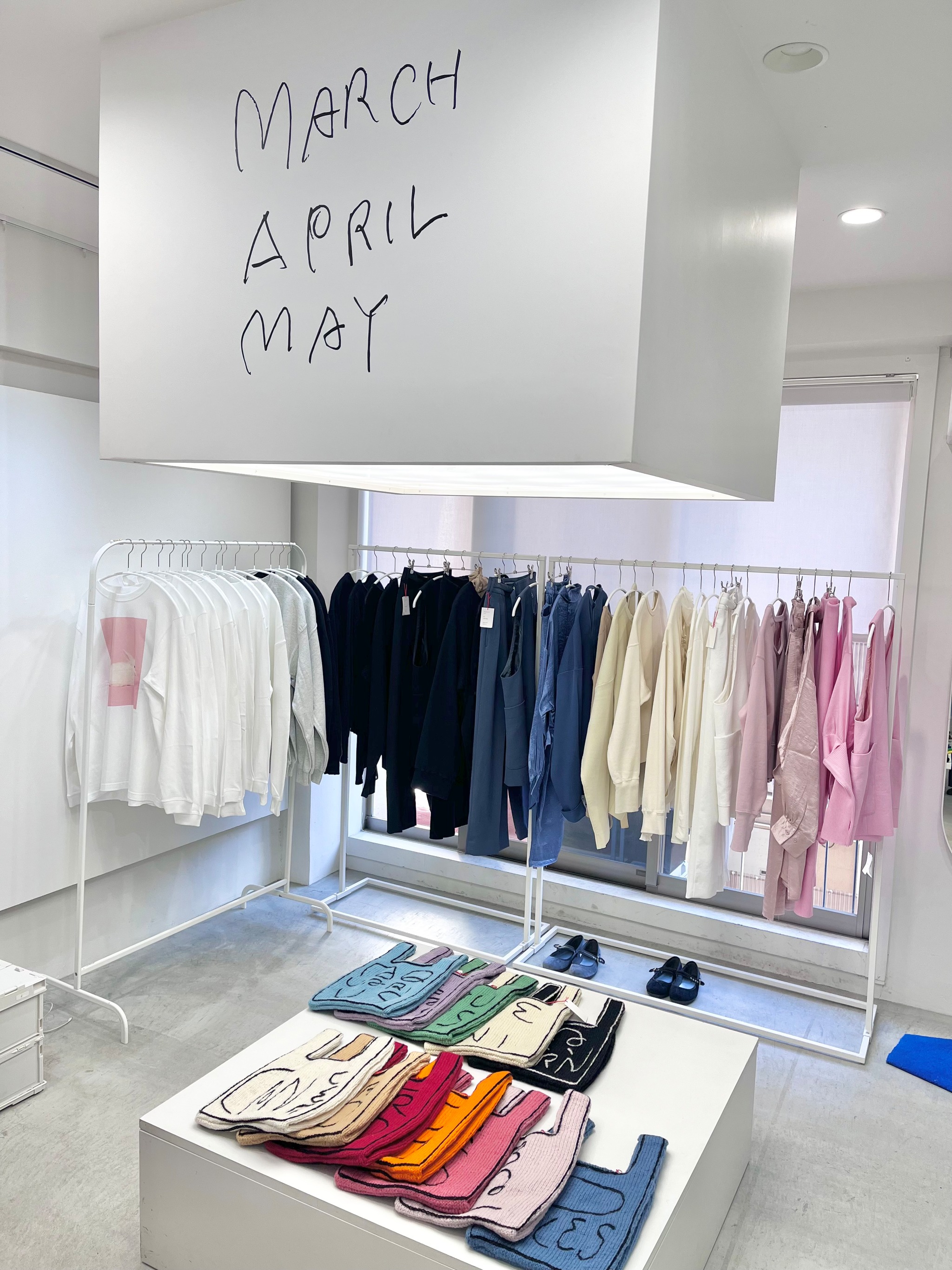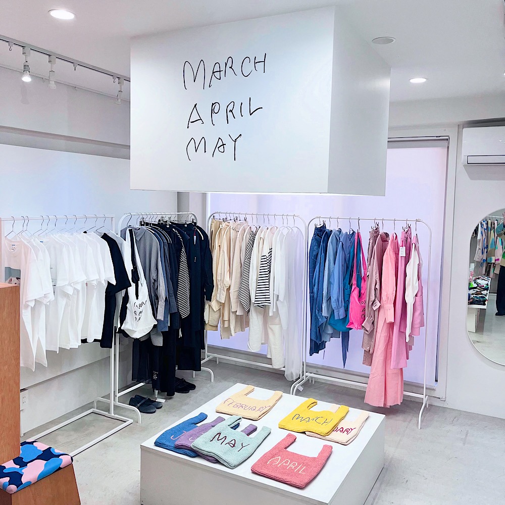 5月のカラーゲストは、MarchAprilMay。yockaのお客さまが会期中何度も訪れるほど、じっくりお洋服と向き合えるブランドです。