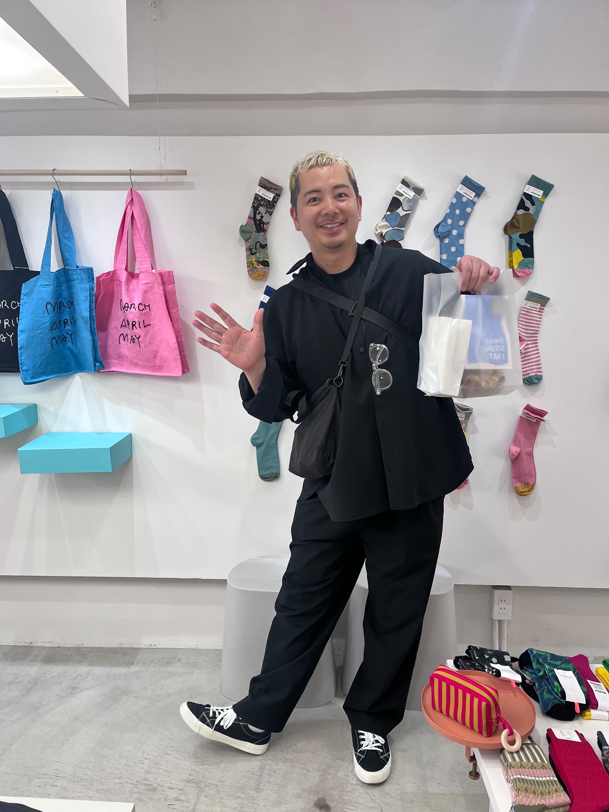 11月はカラーゲスト2ブランドにお願いすることができました。“〆から始まる“をコンセプトにものづくりをされている〆は、前月から靴下をお取り扱いさせていただき、じわじわと人気に・・・!プロデューサーの田代さんにも在店いただけて、終始楽しい1日でした。プロデュースとワードの引き出しの達人です!